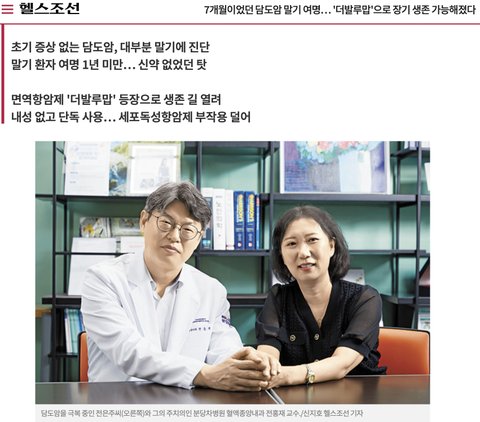 그리고 전세계적으로 담도암에서의 효과를 인정하고 급여화하는 방향으로 움직이고 있는데,