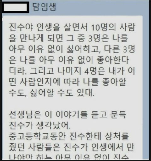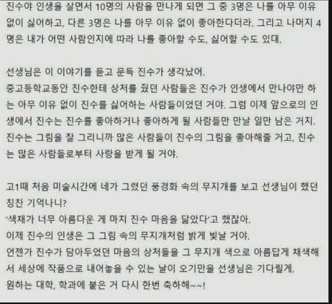 저 진수라는 학생은 선생님 덕분에 남은 고등학교 생활중 2년이 선생님 때문에