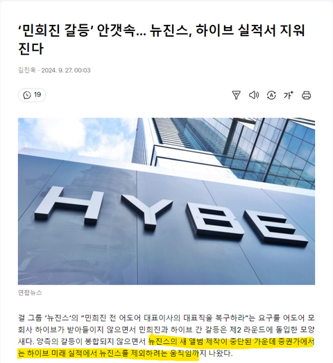 증권가에서 뉴진스는 하이브 실적에서 제외 시킴