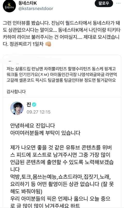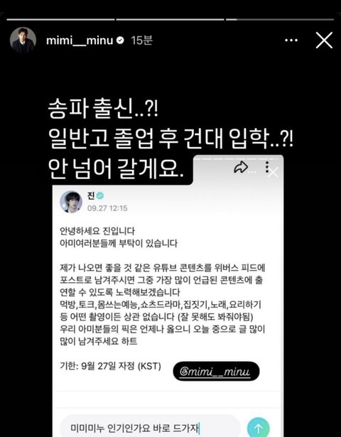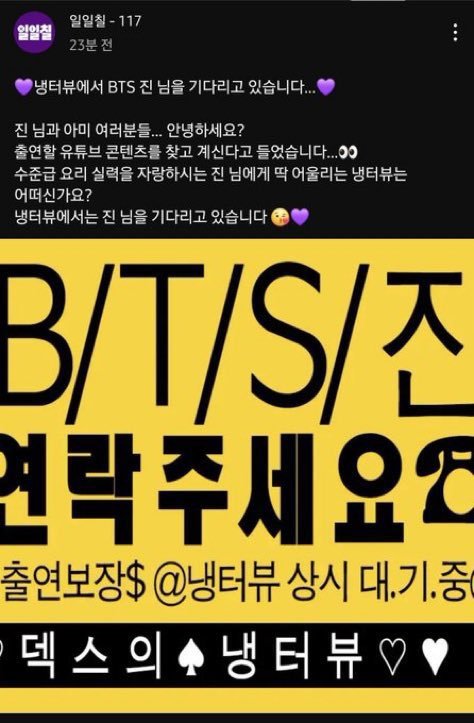 방탄 진 유튜브컨텐츠 출연 소식에 너도나도 섭외중