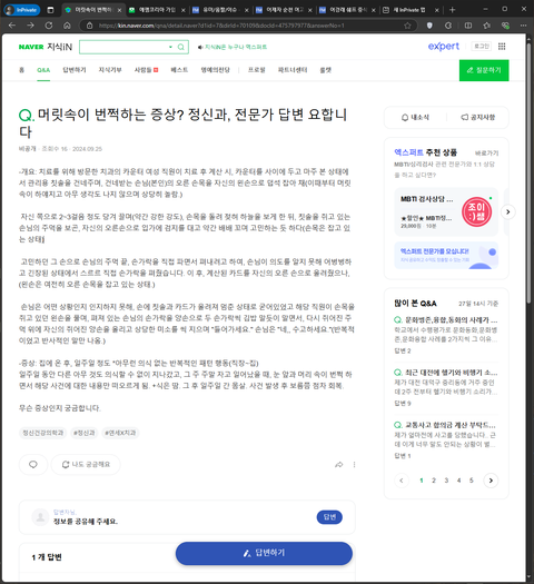 머릿속이 번쩍하는 증상? 정신과, 전문가 답변 요합니다 : 지식iN (naver.com)