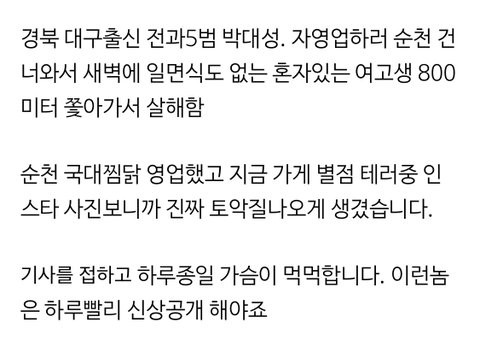 순천 여고생 살인 가해자 인스타 봤는데