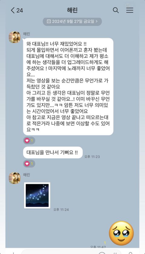뉴진스 해린 민희진 강연 보고 감동받은 카톡