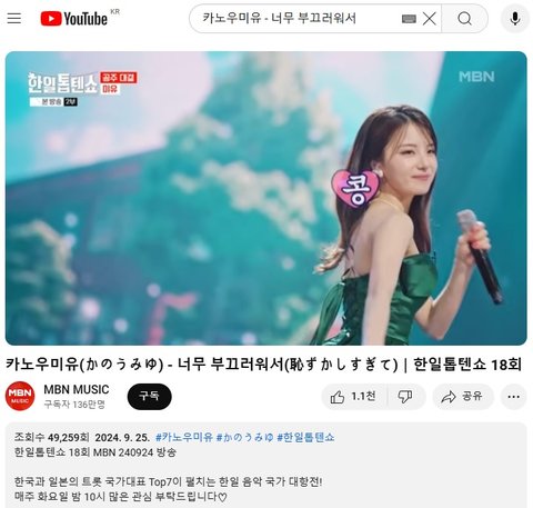 (사진2 설명) 카노우미유(かのうみゆ) - 너무 부끄러워서(恥ずかしすぎて)|한일톱텐쇼 18회
