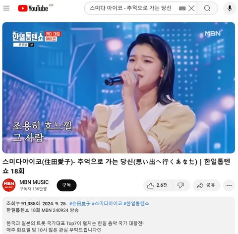 (사진4 설명) 스미다아이코(住田愛子)- 추억으로 가는 당신(思い出へ行くあなた)|한일톱텐쇼 18회