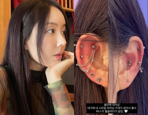 공개된 사진에는 화려한 피어싱 여러 개를 한 그의 귀 모습이 담겨 눈길을 끌었다.