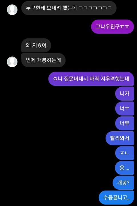모아나 개봉한다길래 친구한테 보내려햣ㄴ느데 실수로 짝남한테 보내버랴서 개식겁해서 지우거잇엇믄데 얘가 바러 읽음.... 근데 같이 보재 시바꺼