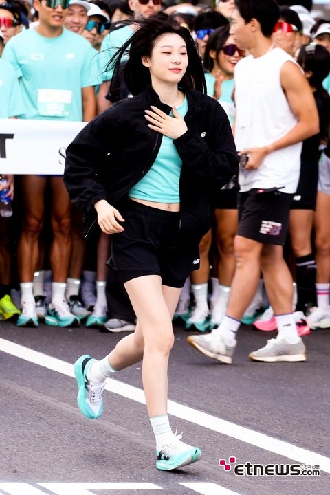 김연아가 29일 서울 영등포구 여의도공원에서 진행된 뉴발란스 주최 '2024 런 유어 웨이 서울 대회(2024 Run your way SEOUL) 일정에 참석했다.
