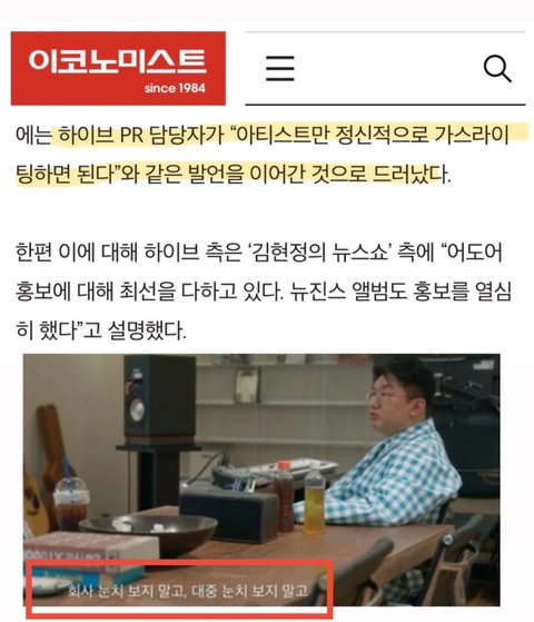 그 찬양도 넘 이상했고 그걸 공개적으로 올린 민희진은 더 이해불가. 아티스트를 이용하지 말라고