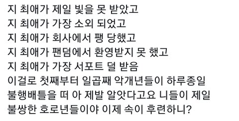 네 여러분들 최애랑 개인팬들이 세상에서 제일 불쌍하고 불행한 사람들이라고 인정하겠습니다.