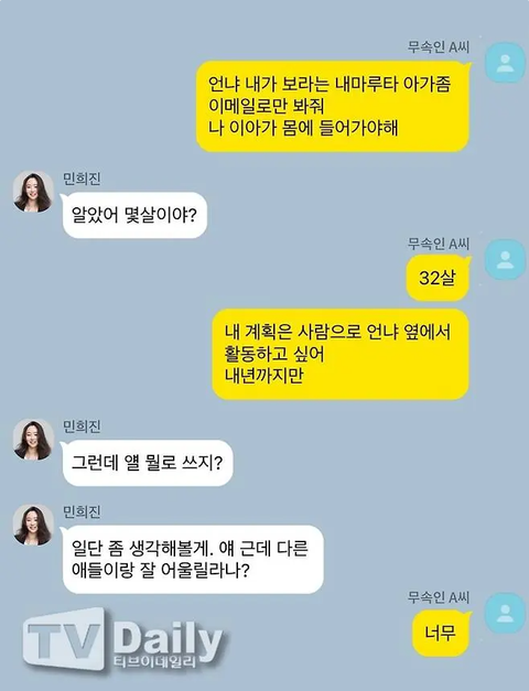 지겨워라 언제적거야 개인 카톡털린 민희진 개불쌍
