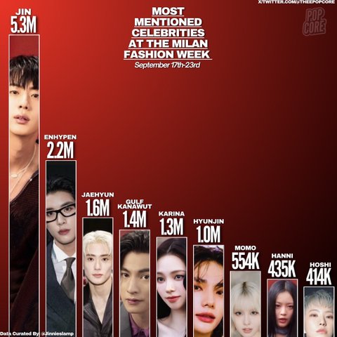 이건 본계에 포스팅 많이 할수록 유리하긴 해서 픈 8개 포스팅한 걸로 10.5M 카리나 5개로 8.38M 진 1개로 7.89M이니까 영향력은 방탄이 제일 강력하긴 함
