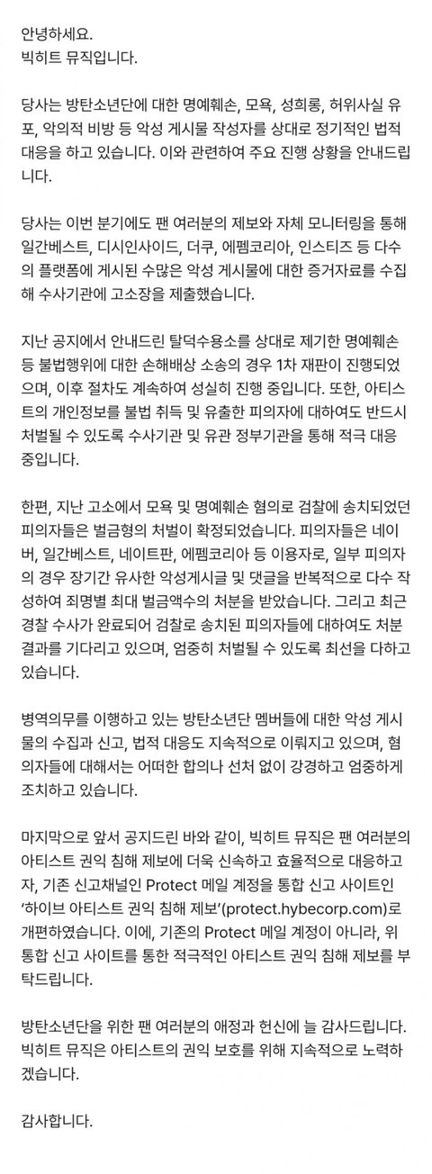 개편된 사이트 protect.hybecorp.com