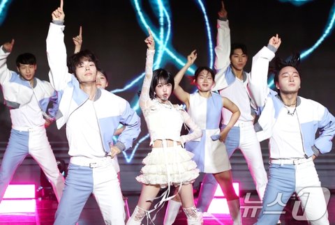 가수 최예나가 30일 오후 서울 강남구 청담동 일지아트홀에서 가진 세 번째 싱글앨범 '네모네모' 발매 기념 쇼케이스에서 타이틀 곡을 선보이고 있다. 2024.9.30/뉴스1 ⓒ News1 권현진 기자