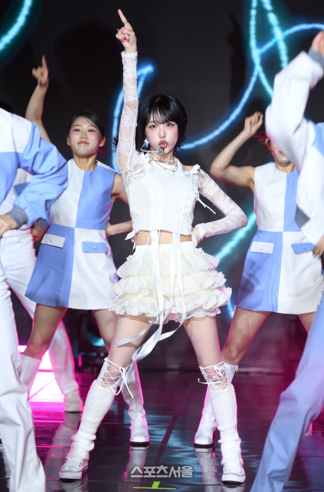 가수 최예나(YENA)가 30일 서울 강남구 일지아트홀에서 열린 세 번째 싱글 앨범 ‘네모네모’ 미디어 쇼케이스에서 공연을 하고 있다. 사진 | 최승섭기자 thunder@sportsseoul.com