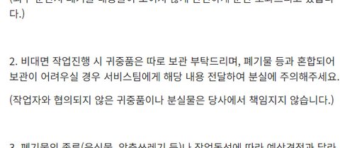 이 부분은 고객에게 안내드렸으나, 정확히 “폐기물”처리는 할 수 있다라는 뉘앙스의 말씀을 하셨기 때문에 저희는 직업의식으로 서비스 차원에서 진행했습니다.