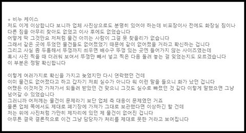 그럼에도 고객님이 말씀하신 분실물을 찾기 위해 주말까지 나와서 폐기물을 뒤졌으며, 요청하신 부분도 모두 들어드렸습니다.