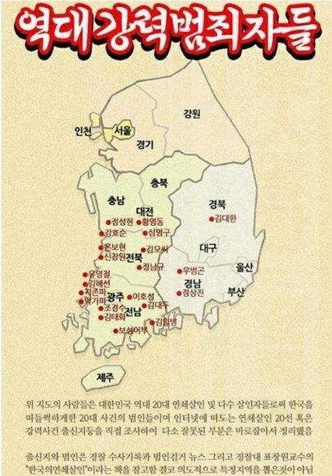 이 정도면 이제 여혐 범죄 저지르는 범죄자들 출생지 표시하고 부모 고향도 같이 적어야 하는 거 아니냐ㅋ