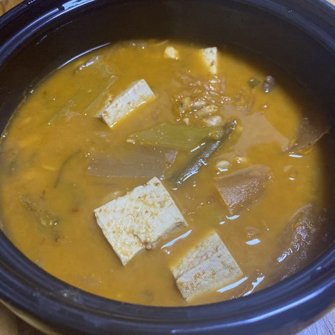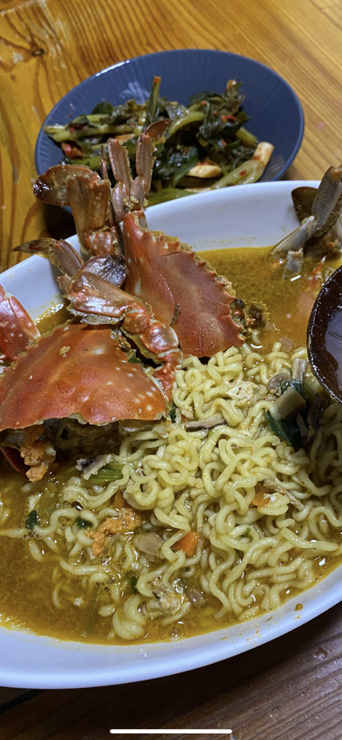 당면 있는 등갈비찜 청국장 김치, 꽃게로 육수낸 어묵
