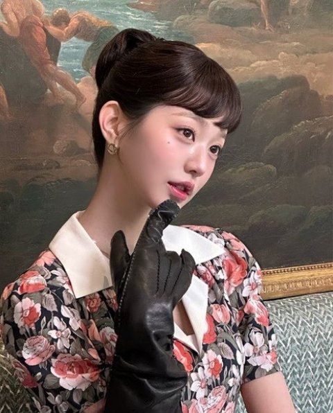 사진 속 장원영은 마치 오드리 헵번 같은 헤어스타일로 색다른 매력을 보여준다. 장원영은 그윽한 눈빛으로 어딘가를 응시하고 있다.