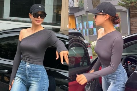 유현주는 그레이 컬러의 원숄더 탑을 매치해 어깨 라인을 과감하게 드러내며 볼드한 스타일을 완성했다. 슬림한 실루엣을 강조하는 상의와 더불어 하이웨이스트 데님 팬츠로 다리 라인을 길게 연출해 눈길을 끌었다.