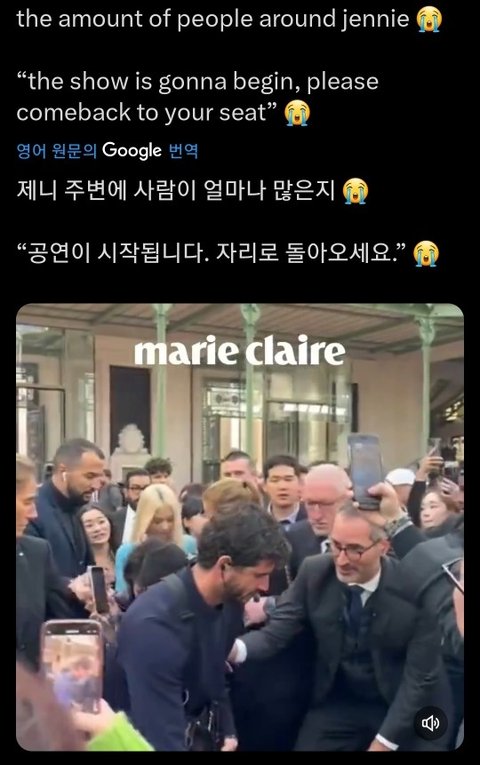사람들 제니한테 다 몰려버리니까 관계자가 곧 쇼 시작되니 본인 자리로 가라 그랬음ㅋㅋㅋㅋㅋ 개웃겨