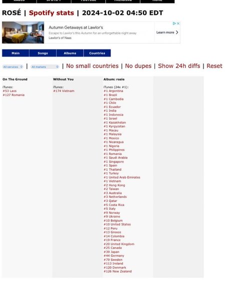 로제 앨범 프리오더만으로 아이튠즈 25개국 1위
