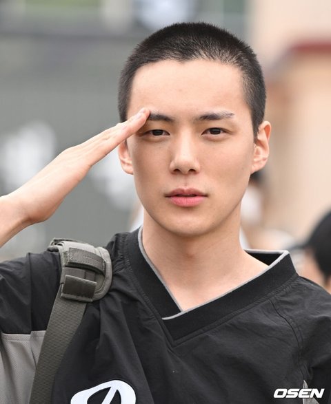 [OSEN=연천, 최재현 기자] 그룹 몬스타엑스 민혁이 4일 경기도 연천 5사단 신병교육대로 입대한다.민혁은 오는 2024년 9월 30일 전역 예정이다.몬스타엑스 민혁이 입소 전 취재진 앞에서 포즈를 취하고 있다2023.04.04 /hyun309@osen.co.kr