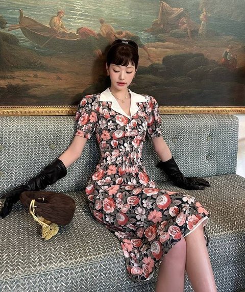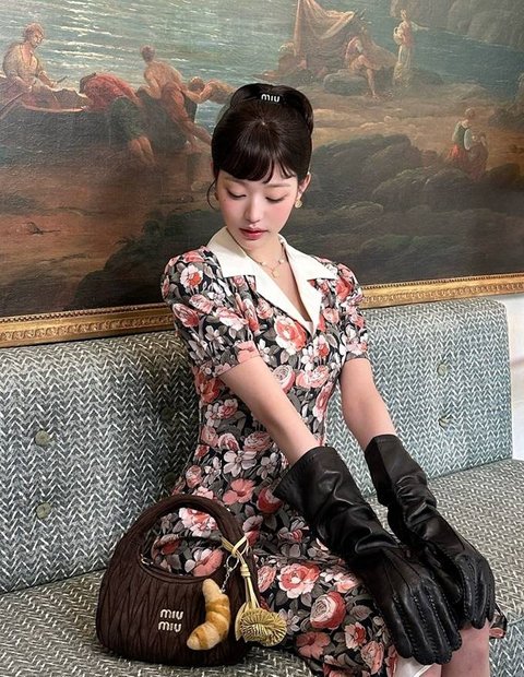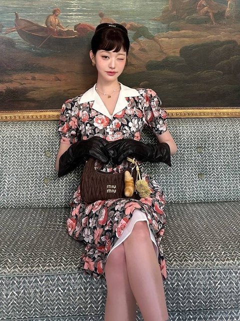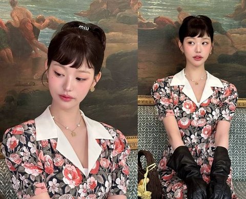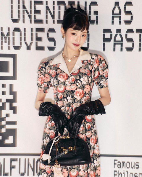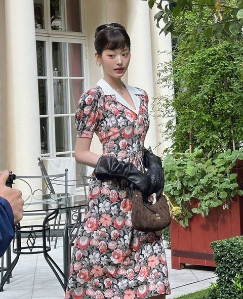 (여자)아이들 민니와 함께 한국 대표로 미우 미우 쇼에 참석한 장원영은 올림머리에 복고풍의 화사한 꽃무늬 원피스룩으로 복고풍의 햅번룩을 연출하며 요정같은 자태를 뽐냈다.