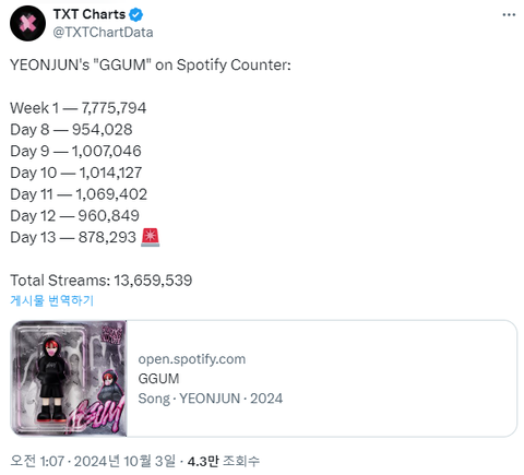 투바투 연준 껌 해외에서 역주행하네