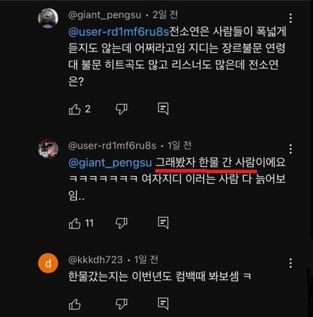 팬들은 첫 주 ar 대놓고 깔린 방송을 라이브라고 주장하더니 진짜 앵콜이 나오니… 화제성이 없으니 망정이지 다른 하이브돌들이 이랬으면 ...