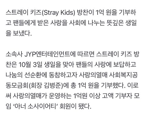 스키즈 멤버들 기부 소식은