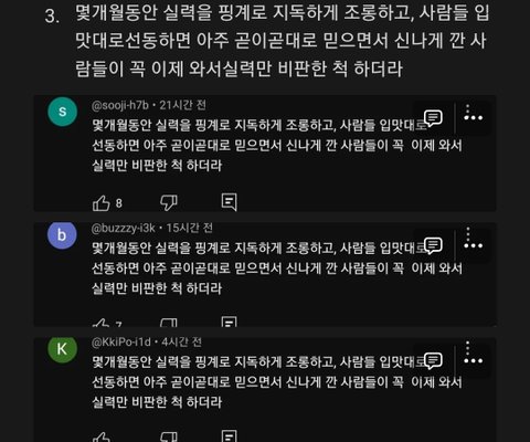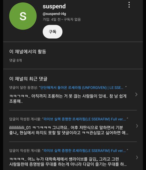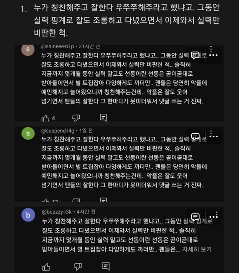 유튜브 여론 조작은 못한다고 처맞으니까 축제 도는 날 맞춰서 계정판걸로 댓글 주작치는것 좀 봐