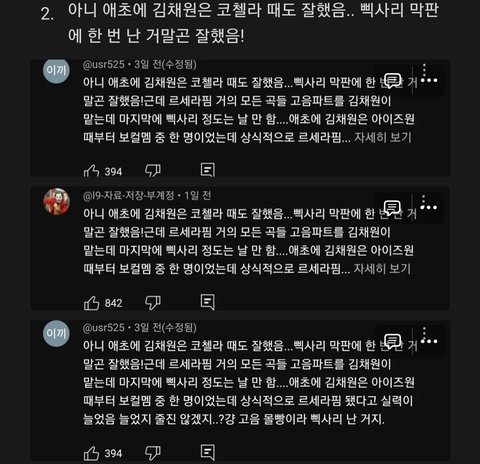 댓글창 소름끼칠 정도로 중복 많음