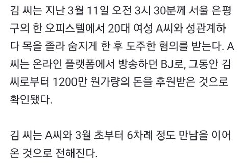 20대 여BJ 관계 중 살해한 40대 살인 전과남