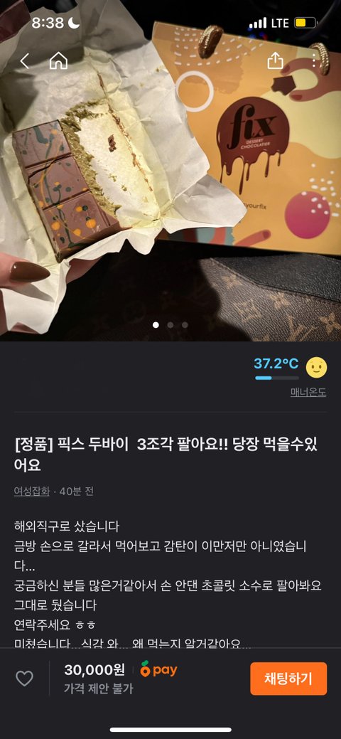 당근에 누가 먹다만 두바이초콜릿올림