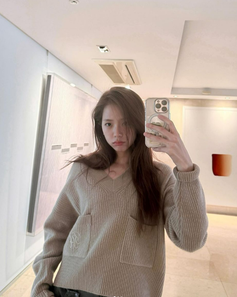 함께 업로드한 사진 속 지수는 거울 앞에서 휴대폰 들고 있는 모습. 지수는 두꺼운 브이넥 니트를 착용한 채 거울을 바라보며 새초롬한 표정을 짓고 있다. 특히 화장기 없는 얼굴에도 뚜렷한 이목구비가 시선을 사로잡는다.