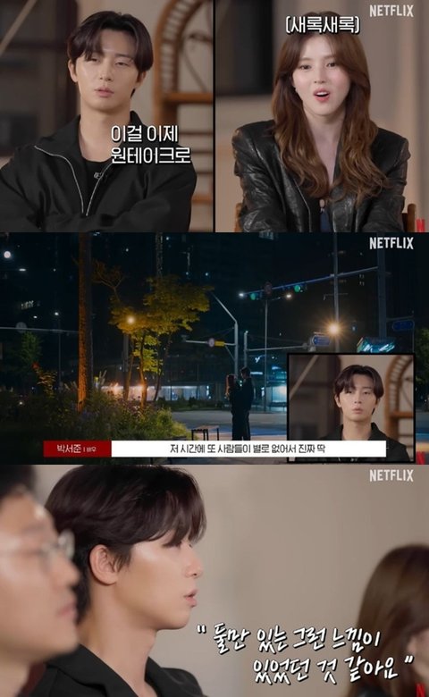 이어 박서준은 '경성크리처2'의 하이라이트를 장식한 한소희와의 키스신도 언급했다. 그는 "키스신을 원테이크로 찍었다. 마침 저 시간에 사람들이 별로 없어서 진짜 딱 둘만 있는 그런 느낌이 들었다"고 밝혔다.