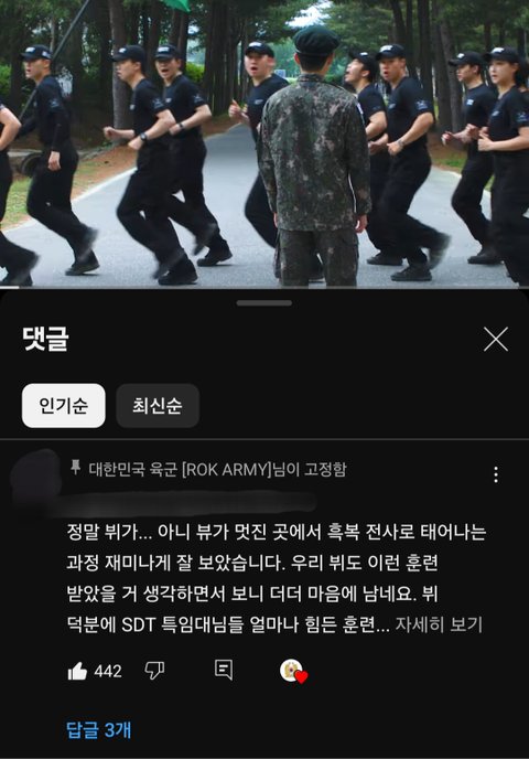 ROK ARMY라고 대한민국 육군 유투브 채널이 있는데 다양한 보직들을 시트콤 처럼 짜서 소개하는 영상이 있음 이번엔 SDT 특임대편이었는데 시작할때 뷰를 뷔로 발음함ㅋㅋㅋㅋ