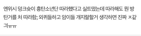 아미 ㅁㄱ하자 저게 찐 표절이면 그건 회사차원에서 나설 일이고 그냥 귀로 듣고 유사성이 있다고 표절이라고 하는 거 무리인 거 우리가 더 잘 알잖아 그동안 색감이 표절이다, 코디가 표절이다, 굿즈가 표절이다, 심볼이 표절이다 등등 당해온 게 얼만데 우리도 똑같이 굴지 말자 아이돌한테 함부로 표절 딱지 붙이는 것만큼 잔인한 게 없잖아