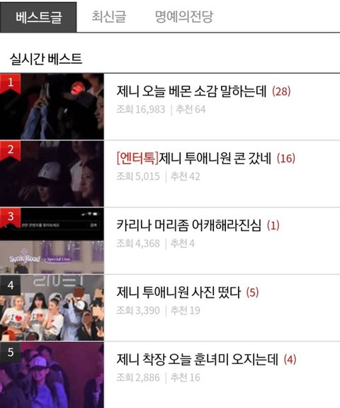 제니 콘서트 한번 간 걸로 화제성 오지네
