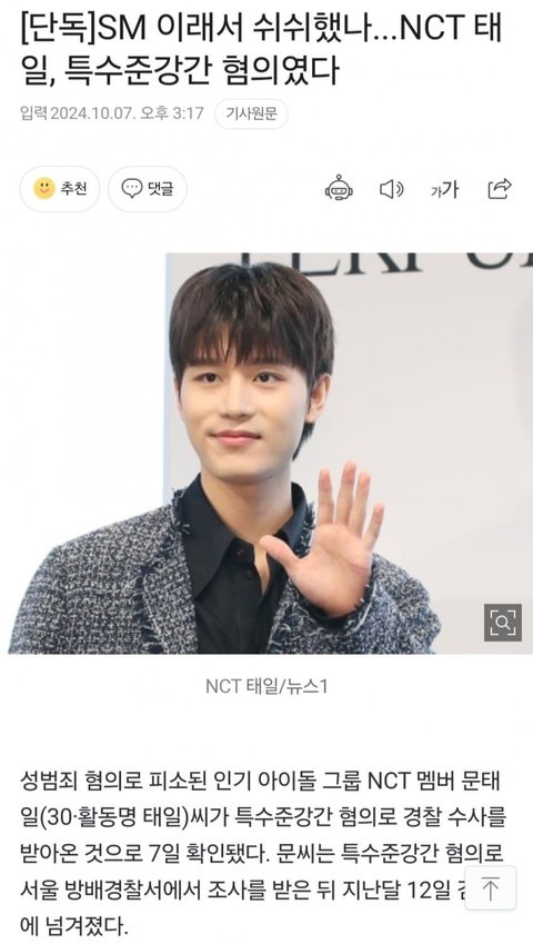 NCT전멤버 문태일, 특수준강간혐의로 밝혀져