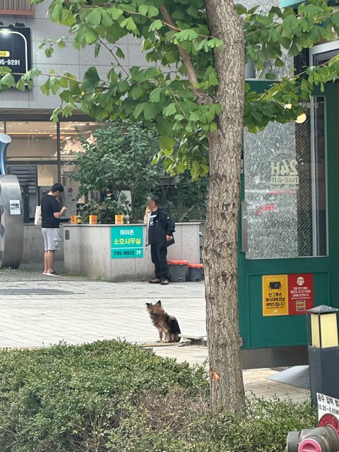 본인 담배핀다고 줄도안한 강아지를 앉아서 기다리리고 시킨후에 담배피고 있더라고요