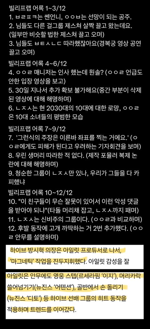 (※ 일간스포츠 기사에는 빌리프랩과 아일릿을 언급하지 않았으나 커뮤니티에서 특정한 채 당사 아티스트를 언급하고 있어 실명으로 설명드렸습니다.)