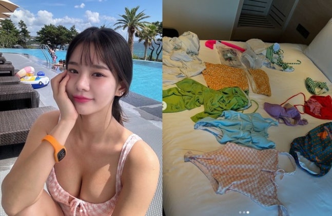 공개된 사진은 맹승지가 여행에 앞서 챙긴 짐. 다양한 스타일의 수영복이 시선을 모은다. 이와 함께 맹승지는 수영장에서 찍은 셀카를 공개했다. 핑크색 수영복을 완벽하게 소화한 맹승지는 볼륨감 넘치는 몸매를 자랑하며 섹시한 매력을 뽐내 시선을 모은다.
