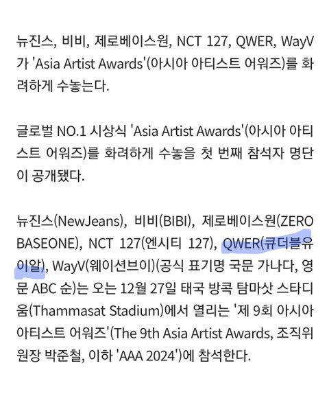 QWER AAA(아시아 아티스트 어워즈) 출연!!