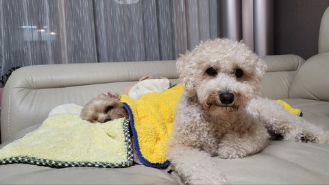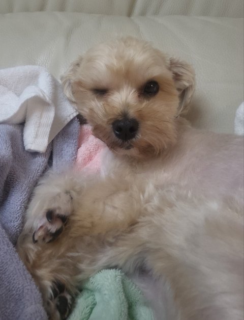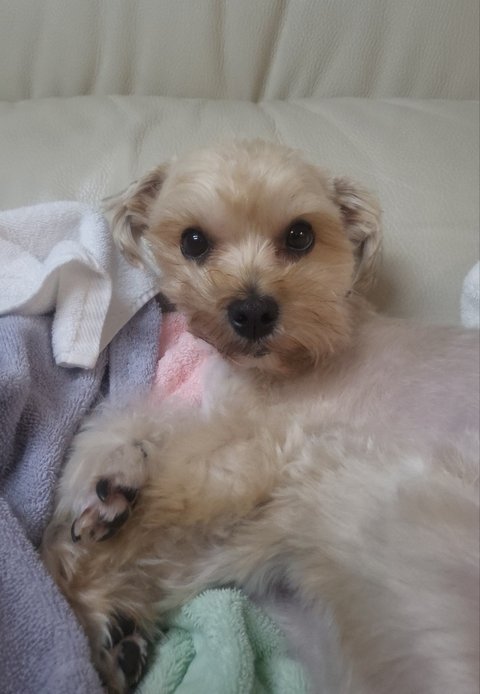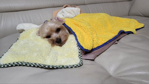 털도 밀고 날도 추워져서 덜덜 떨길래 수건으로 덮어줬더니
