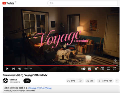 걸그룹 지니어스(Geenius)의 데뷔곡 'Voyage' 뮤직비디오가 10월 9일 유튜브에 게제돼 50만 조회수를 기록 중이다./사진=유튜브 화면 캡처
