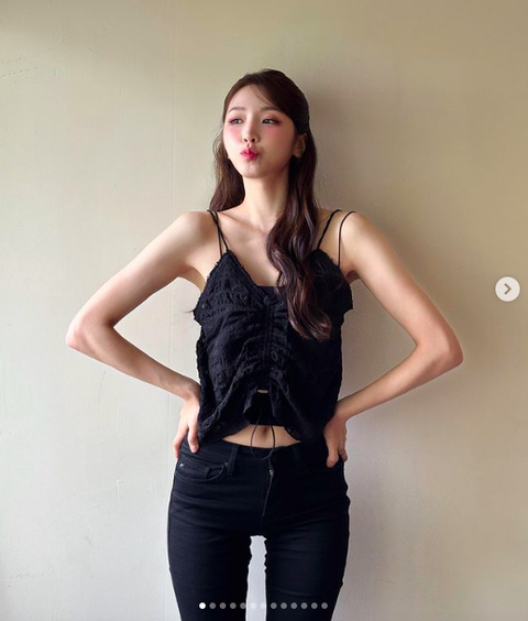 사진 속 성해은은 긴 바지에 끈 나시를 입고 올블랙 룩을 완성한 모습이 담겼다. 가녀린 어깨라인과 수줍게 드러낸 복근을 뽐낸 성해은. 쉬지 않고 운동한 만큼 철저한 자기관리가 돋보인다.