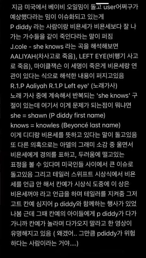 비욘세 퍼프데디 사건 터지면 제니도 연류 된다함